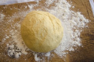 Dough removed from bread machine and formed into one large ball